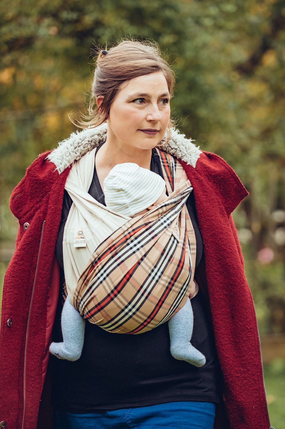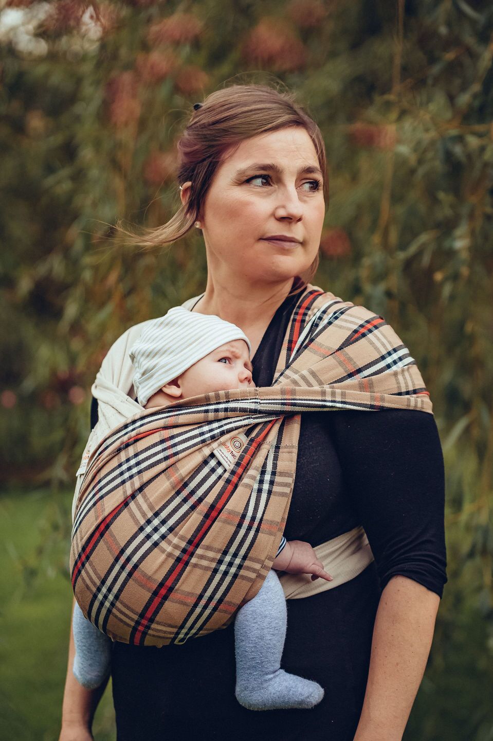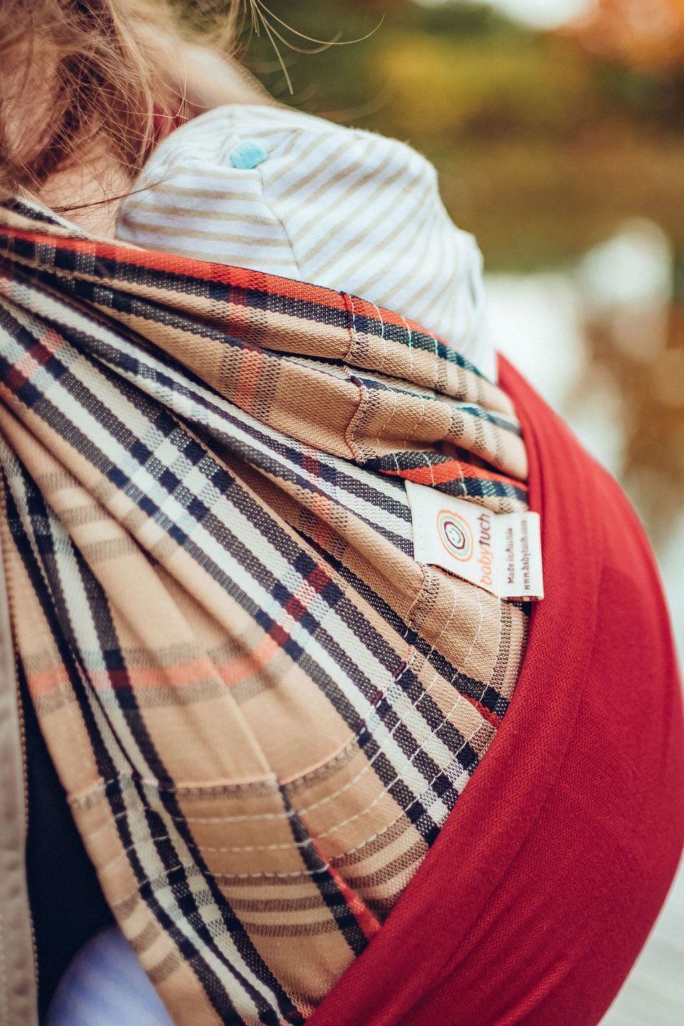 Entdecken Sie das Tragetuch Modell Kariert von Babytuch.ch – ein knotenloses und bequemes Babytragetuch in klassischem Karo-Design mit Beige, Rot, Natur und Schwarz. Ideal für Eltern, die Wert auf Komfort und Stil legen. Hergestellt aus hochwertiger Baumwolle, bietet es optimale Unterstützung für Ihr Baby und ist einfach in der Anwendung. Perfekt für die Kreuztrage, die häufigste Trageweise, empfehlen wir den Kauf von zwei Babytüchern für maximalen Komfort.